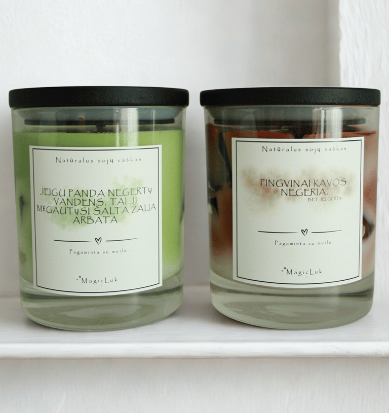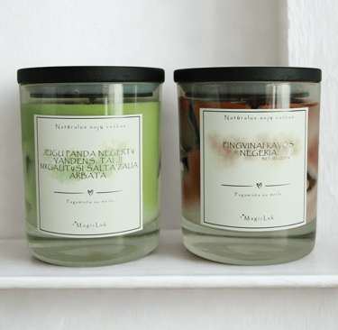 Spintų kvapukai, žvakės rankų darbo indeliuose